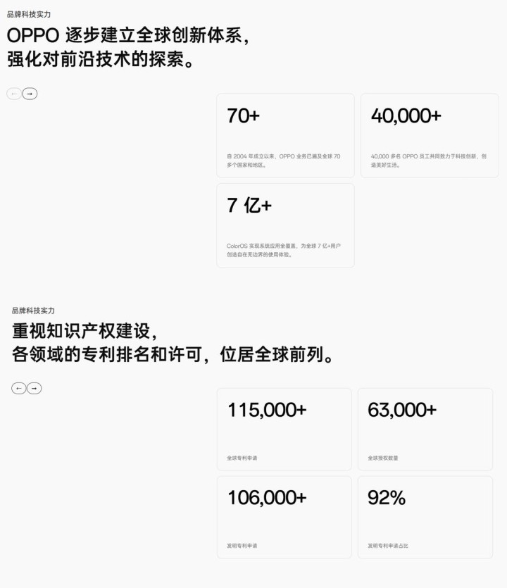 截至目前,OPPO在全球拥有超过11.5万项专利申请,尤其在5G领域实力位居前列。外媒甚至评价OPPO是诺基亚遇到的“最强大、最聪明、最坚定的对手”。